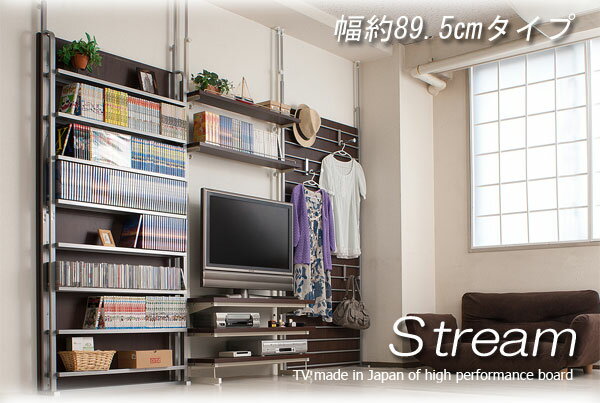 TVやAV機器の設置に加えCDやDVD等も収納でき、天井にしっかりと突っ張るので、安定感も抜群です。