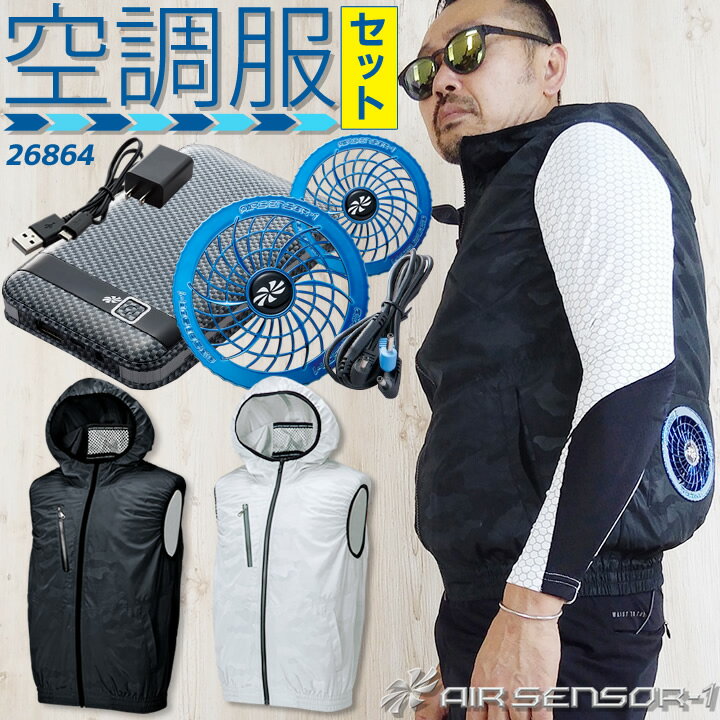 エアセンサー AIR SENSOR-1 空調服 ベスト フード付き 迷彩 ウェアのみ 空調ウェア 男女兼用 迷彩シルバー 迷彩チャコール