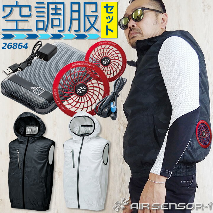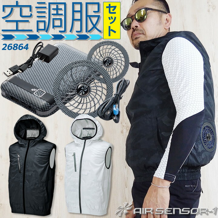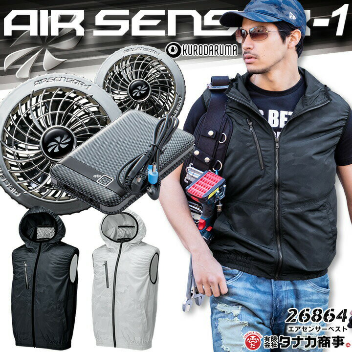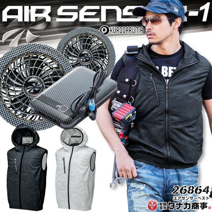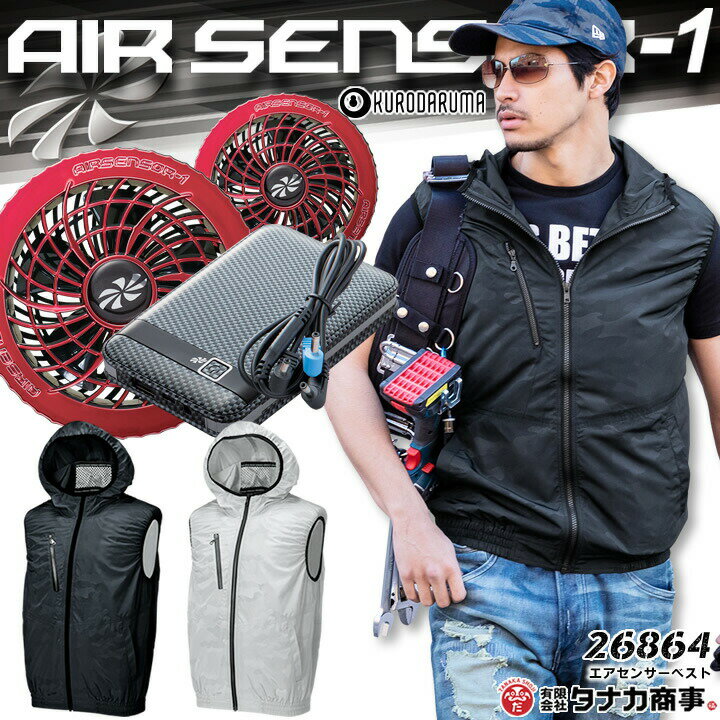 【あす楽】空調服 ベスト セット フード付き バッテリー カーボンファンセット クロダルマ エアーセンサー 26864 KS-10 男女兼用 メンズ レディース 作業服 作業着 草刈り用
